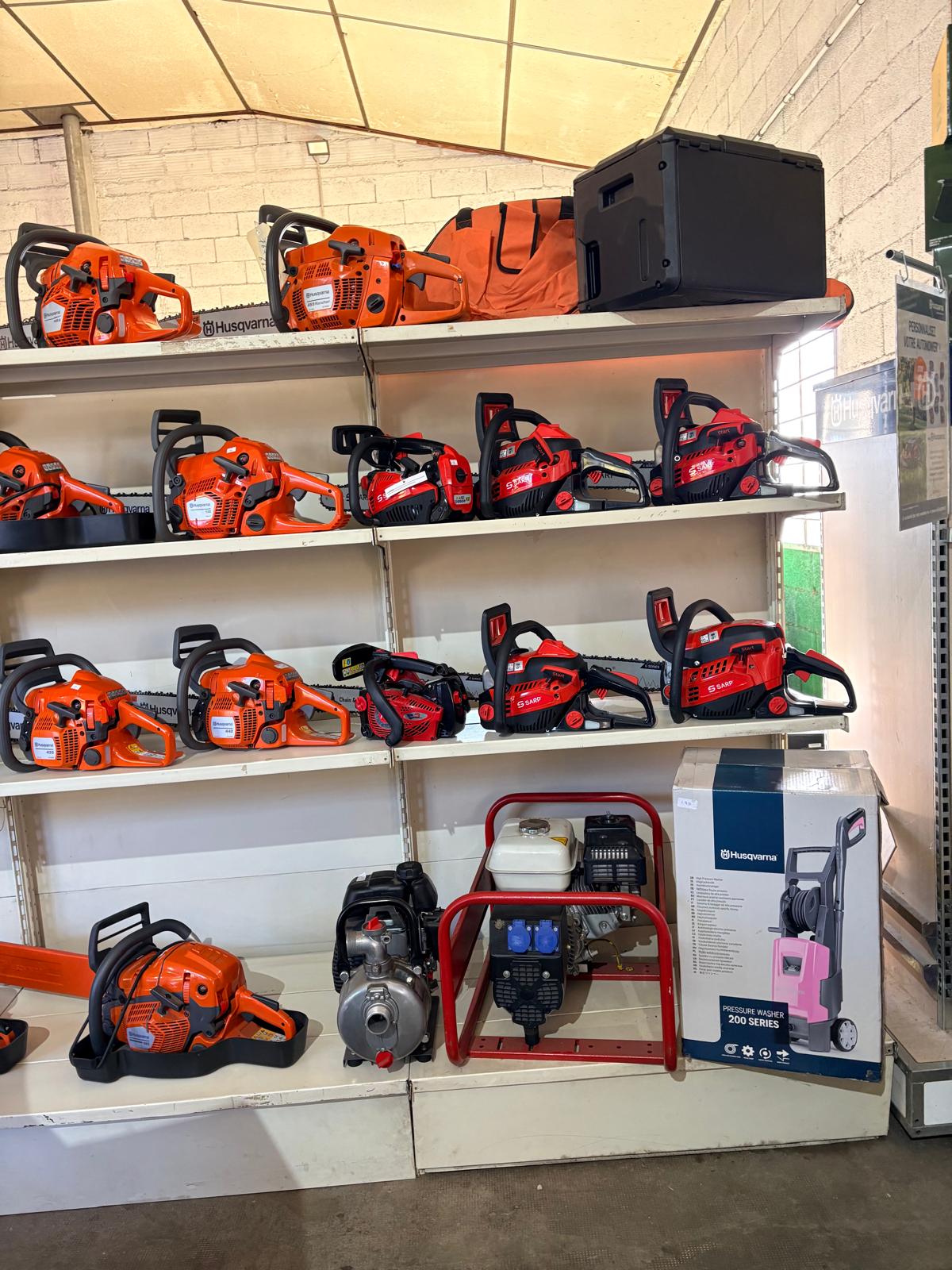 Nous proposons une large gamme d’équipements : tondeuses, débroussailleuses, tronçonneuses, motoculteurs, micro-tracteurs et matériel agricole léger. À cela s’ajoutent nos services de réparations, entretien, vente, reprise, ainsi qu’un choix de matériel neuf et d’occasion. Nous assurons également l’affûtage de vos outils et proposons la vente de croquettes pour chien, pour répondre aux besoins du quotidien.
